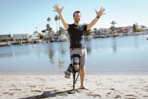 ハンズフリー松葉杖とは、膝下で支える義足のような形状をした新しいタイプの歩行補助具です。